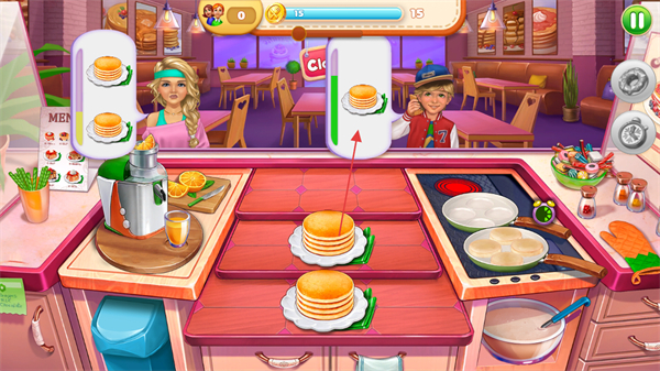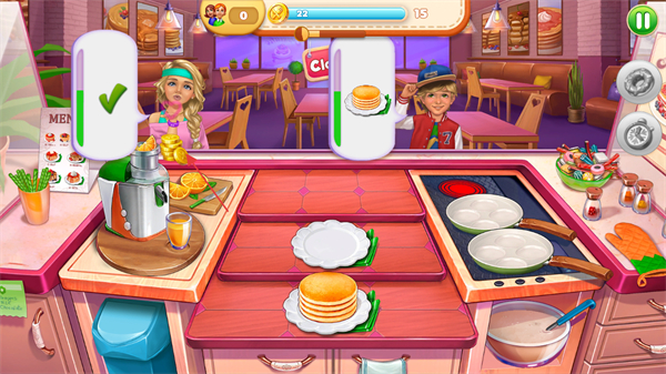 2、難度梯度友好:初期從簡(jiǎn)單菜品與少量訂單起步,隨著經(jīng)營(yíng)推進(jìn)逐步增加菜品復(fù)雜度與客人數(shù)量,新手易上手,資深玩家也能找到挑戰(zhàn)感。