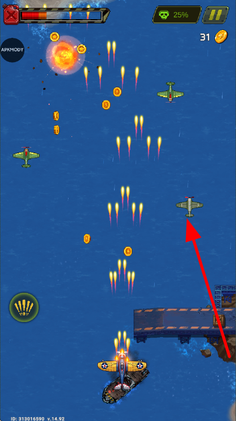 3、攻擊敵人或完成某些任務(wù)時,會有金幣掉落,操控飛機移動到金幣附近,收集金幣,這些金幣可用于后續(xù)的一些操作或解鎖內(nèi)容。