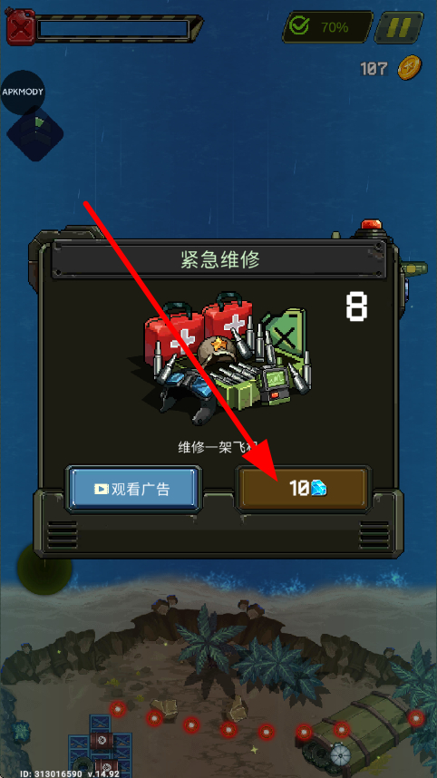 4、飛機在戰(zhàn)斗中被擊落,會彈出緊急維修界面,可選擇消耗相應(yīng)資源來維修飛機,維修后飛機能繼續(xù)投入戰(zhàn)斗,保障游戲的持續(xù)進行。