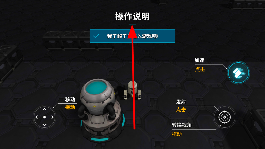 2、接著查看操作說明,了解移動(dòng)、加速、發(fā)射、轉(zhuǎn)換視角等操作方式,熟悉這些操作,為后續(xù)的戰(zhàn)斗做好準(zhǔn)備。