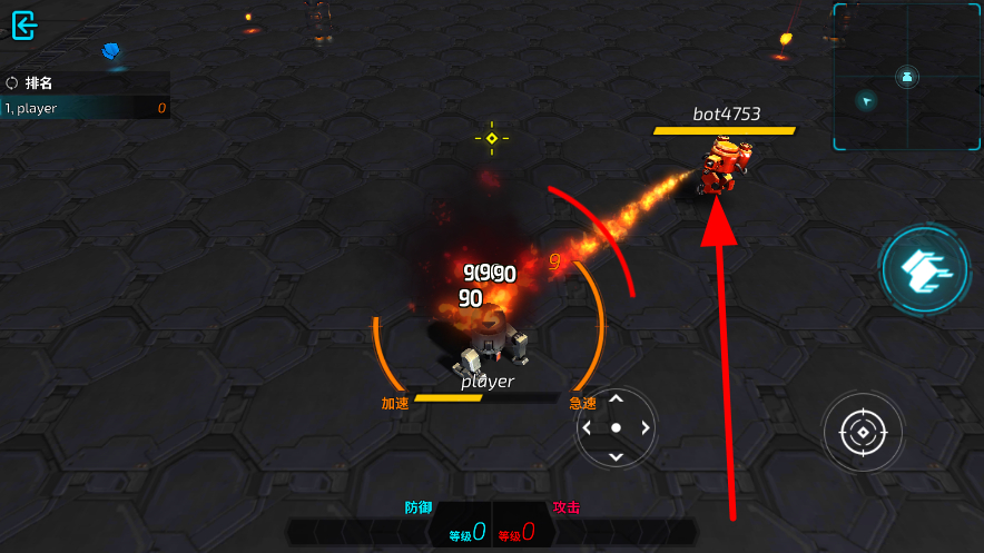 3、進(jìn)入戰(zhàn)斗,當(dāng)敵人發(fā)起火焰攻擊時(shí),操控機(jī)器人靈活移動(dòng),躲避敵人的攻擊,避免受到傷害,保障機(jī)器人的安全。