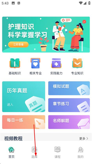 1、在醫(yī)教無憂的首頁,點(diǎn)擊題庫,進(jìn)入題庫頁面。