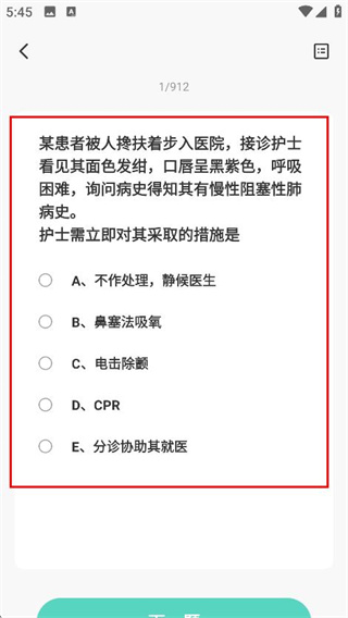 4、在題目頁面,可查看并作答護(hù)士資格相關(guān)題目。