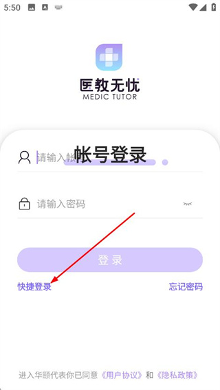 2、在賬號(hào)登錄頁(yè)面,點(diǎn)擊快捷登錄,進(jìn)入快捷登錄頁(yè)面。
