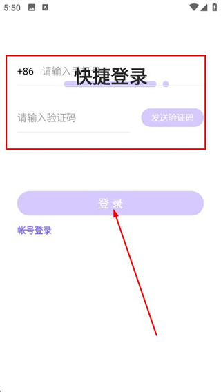 3、在快捷登錄頁(yè)面,輸入手機(jī)號(hào)、驗(yàn)證碼后,點(diǎn)擊登錄,完成快捷登錄操作。