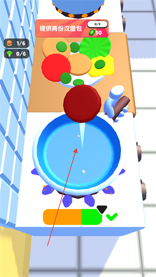4、制作好漢堡后,操控角色將漢堡送到顧客所在的餐桌,完成訂單任務(wù)。