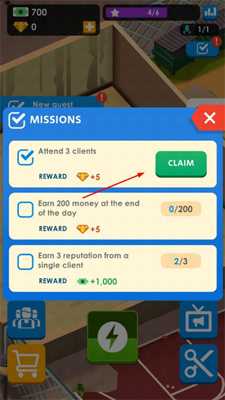 4、持續(xù)為顧客提供服務(wù),積累金幣和鉆石,提升店鋪的經(jīng)營狀況,推進游戲進程。