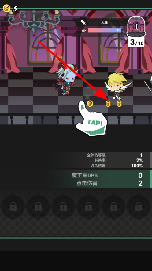 2、擊敗敵人后,會掉落金幣,及時點擊金幣所在位置,拾取金幣,積攢金幣數(shù)量,為后續(xù)提升等級等操作做準備。