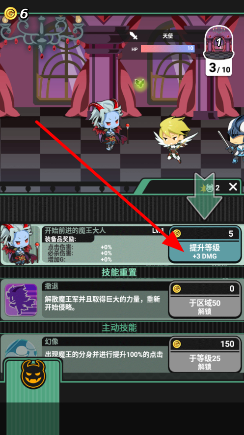 3、當擁有足夠金幣時,找到提升等級的選項,等級提升后,角色的攻擊等能力會得到增強,更易應(yīng)對后續(xù)敵人。