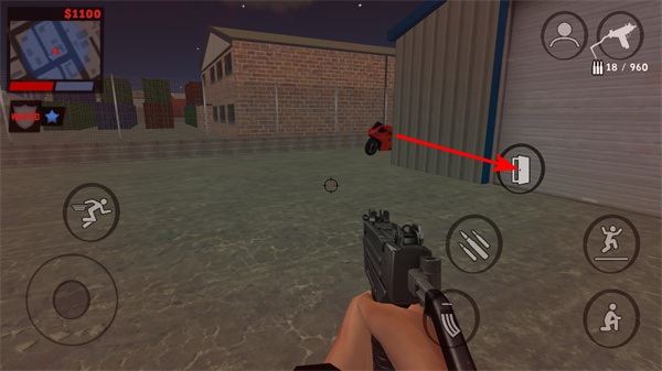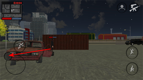 1、通過左側(cè)的虛擬搖桿操控角色移動,城市場景中探索,尋找武器和任務目標,是角色行動基礎操作。