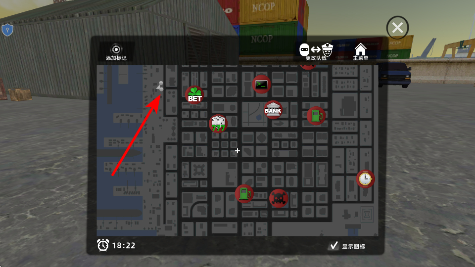 1、查看地圖界面,了解自身位置和任務(wù)點如BET、BANK等標識,規(guī)劃行動路線,高效完成關(guān)卡任務(wù)。