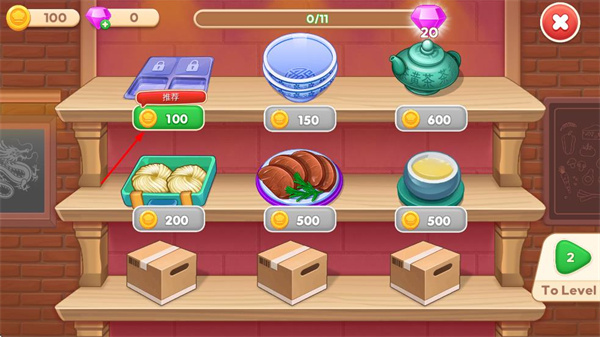 4、在商店界面,可使用積累的金幣購買各種物品,提升餐廳的經(jīng)營(yíng)能力和餐品供應(yīng)種類,推進(jìn)游戲進(jìn)程。