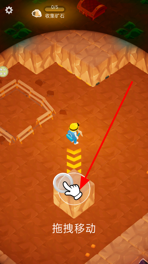 1、通過拖拽的方式移動角色,在礦場中尋找礦石,然后進行挖掘,收集礦石,完成收集礦石的任務(wù)目標。