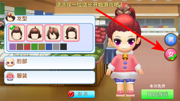 1、進(jìn)入后,先選擇店長形象,可從發(fā)型、臉部、服裝等方面挑選,打造出心儀的店長,為經(jīng)營商店邁出第一步。
