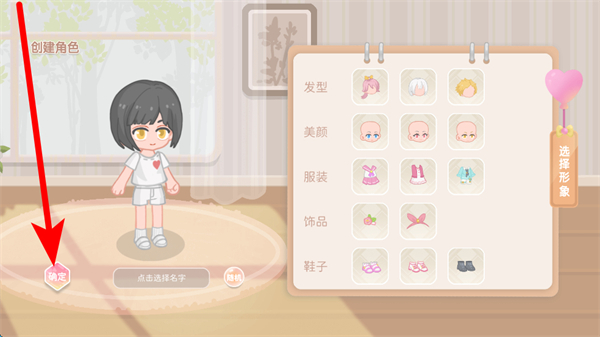 1、首先進(jìn)行角色創(chuàng)建,從發(fā)型、美顏、服裝等多個(gè)方面挑選,打造出心儀的角色形象,然后點(diǎn)擊確定,完成角色創(chuàng)建步驟。