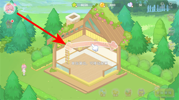 2、創(chuàng)建好角色后,可單指滑動(dòng)屏幕移動(dòng)視角,以便更好地查看家園場(chǎng)景內(nèi)的各個(gè)區(qū)域與元素,規(guī)劃家園布局。