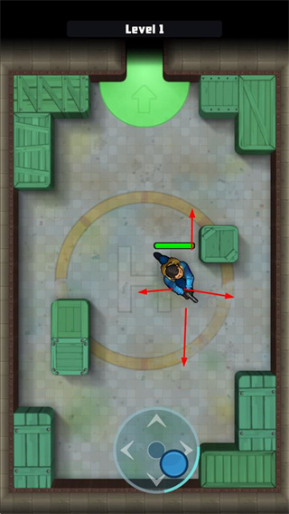 1、通過虛擬搖桿操控角色在不同的關(guān)卡中移動(dòng),探索場景,尋找敵人。