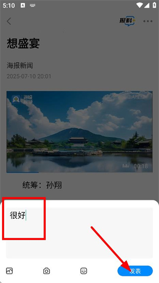 4、在評(píng)論輸入框中輸入評(píng)論內(nèi)容,點(diǎn)擊發(fā)表,發(fā)布評(píng)論。