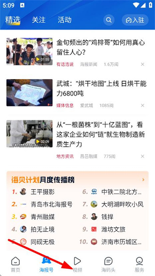 1、在軟件首頁(yè),點(diǎn)擊底部的視頻,進(jìn)入視頻頁(yè)面。