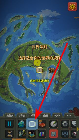 1、設(shè)置世界法則,點(diǎn)擊相關(guān)圖標(biāo),選擇適合的規(guī)則,這些規(guī)則會(huì)規(guī)范世界內(nèi)生命與文明的發(fā)展,讓世界運(yùn)行更符合預(yù)期。
