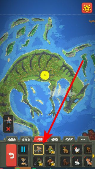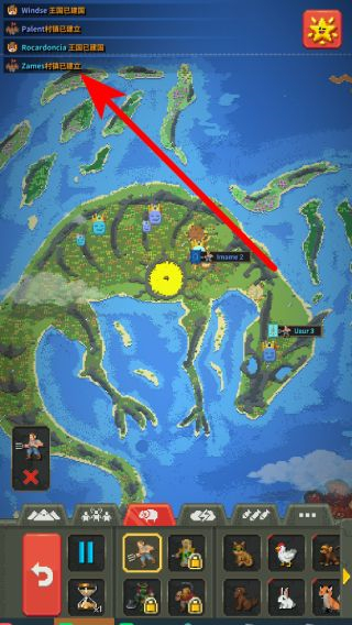 2、投放生命,在界面下方選擇人類、動(dòng)物等圖標(biāo),點(diǎn)擊地圖合適位置,就能投放相應(yīng)生命,它們會(huì)自主活動(dòng),建立部落或繁衍生存。