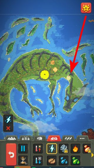3、觸發(fā)災(zāi)害,選擇閃電,地震等災(zāi)害圖標(biāo),作用于地圖,改變世界格局,災(zāi)害會(huì)破壞現(xiàn)有文明或地形,推動(dòng)世界產(chǎn)生新變化。