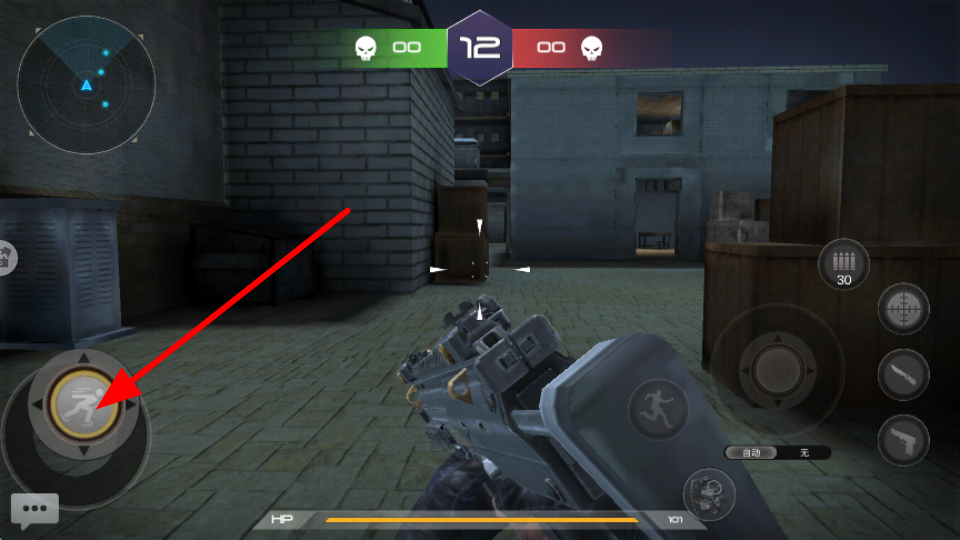 1、點(diǎn)擊左下角移動(dòng)按鈕,操控角色在場(chǎng)景中移動(dòng),尋找有利的戰(zhàn)斗位置,躲避敵人攻擊。