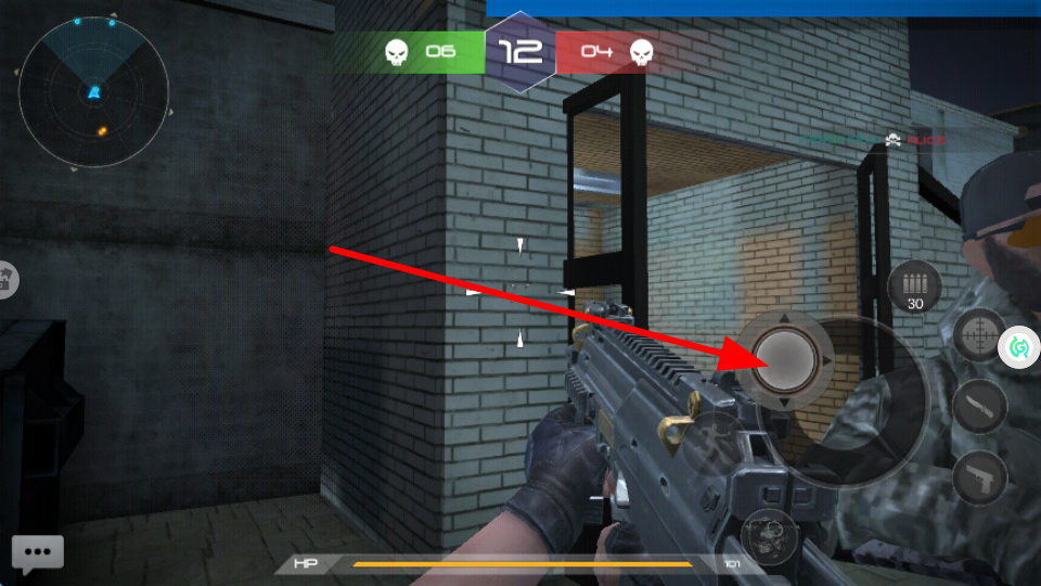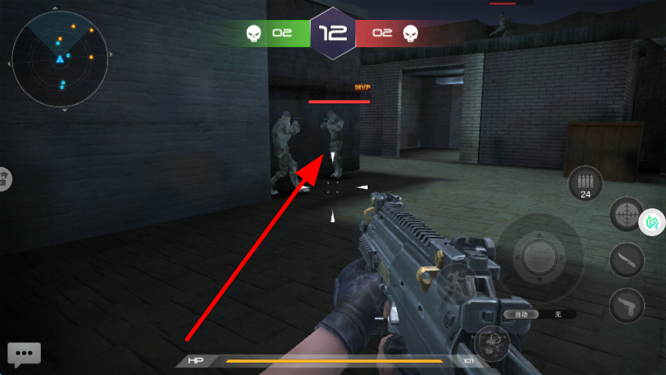 2、發(fā)現(xiàn)敵人后,移動(dòng)視角鎖定目標(biāo),再點(diǎn)擊射擊按鈕,向敵人開火,盡可能精準(zhǔn)命中。