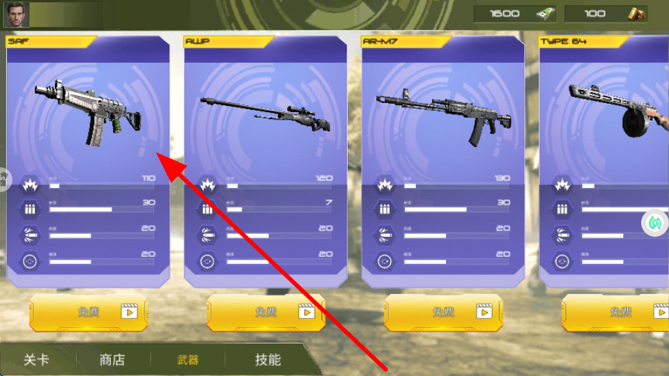 1、武器界面,有多種槍械可供選擇,通過相應(yīng)方式獲取心儀的槍械,為戰(zhàn)斗配備強(qiáng)力武器。