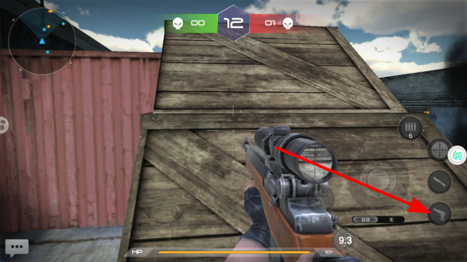 4、戰(zhàn)斗過程里,可以根據(jù)戰(zhàn)場(chǎng)情況,點(diǎn)擊切換槍械按鈕,選擇更換合適槍械,更好打擊敵人。