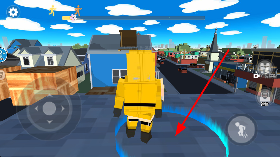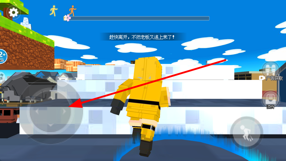 2、點(diǎn)擊跳躍按鈕,可以讓角色快速躍起,可輕松跨越障礙,也能躲避從后方追來的老板。