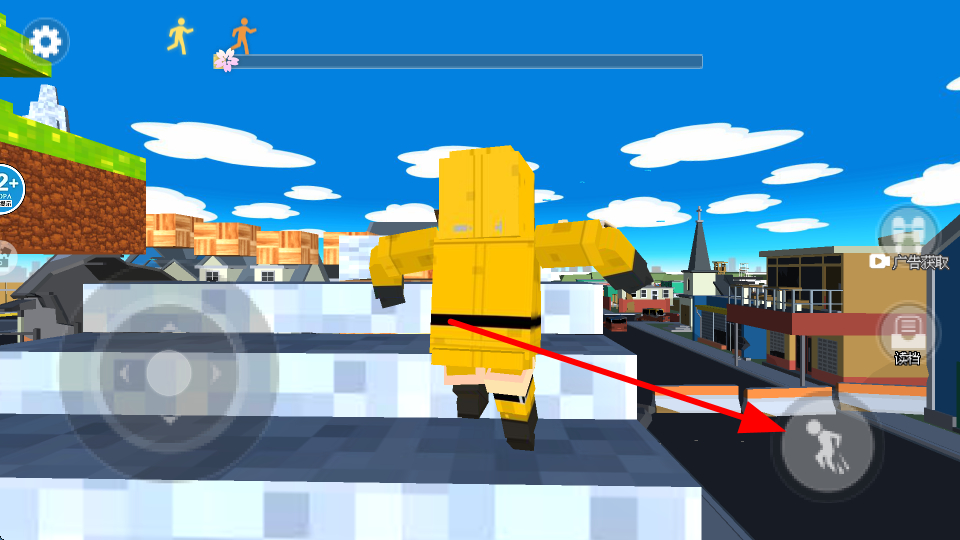 1、通過左側(cè)移動按鍵,操控角色在像素場景中靈活移動,躲避危險(xiǎn),朝著安全區(qū)域前進(jìn)。