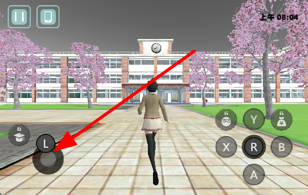 2、進(jìn)入游戲校園后,用左側(cè)操控鍵控制角色移動方向,朝著學(xué)校建筑等目標(biāo)位置前進(jìn)。
