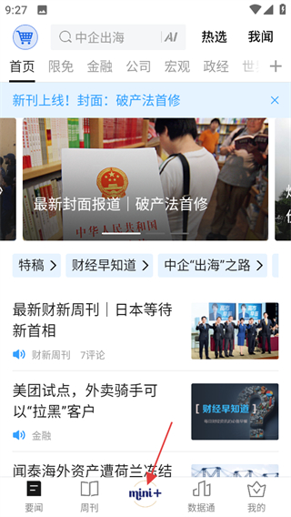 1、進入財新網(wǎng)首頁,點擊底部mini+,進入mini+頁面。