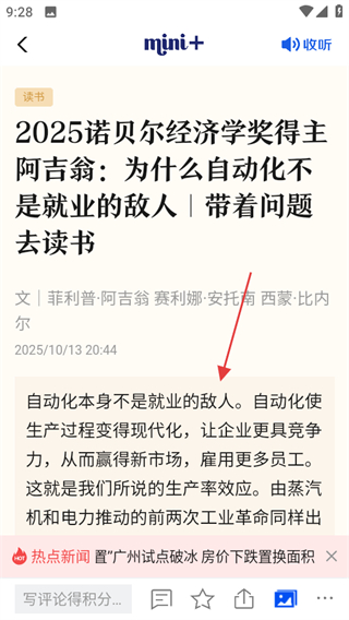3、在讀書板塊,選擇想看的文章,點擊進入文章詳情頁面。