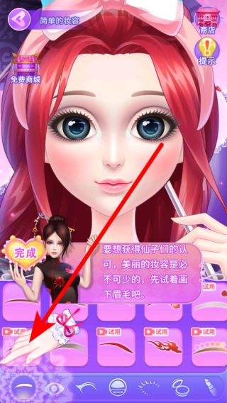 2、然后進(jìn)入化妝環(huán)節(jié),比如要獲得仙子們的認(rèn)可,需打造美麗妝容,可先從畫(huà)眉毛開(kāi)始,利用游戲提供的各類(lèi)眉形等美妝資源,精心設(shè)計(jì)。