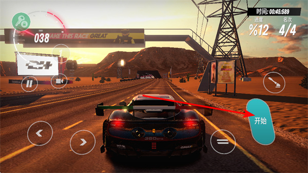 1、啟動(dòng)拉力地平線的游戲,點(diǎn)擊開(kāi)始的按鈕,進(jìn)入賽車游戲的比賽的場(chǎng)景。