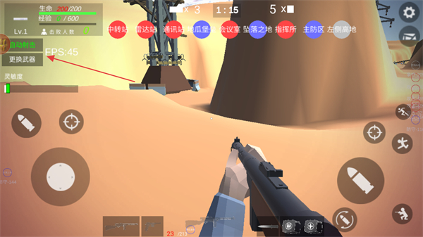 4、開啟自動射擊按鈕,方便在移動中攻擊敵人,提升戰(zhàn)斗效率。