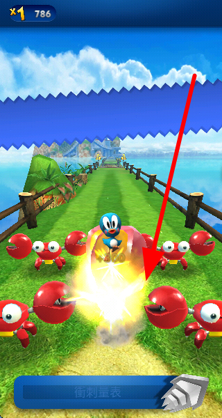 4、碰到敵人阻攔,利用沖刺技能,快速向前沖,撞開(kāi)敵人,繼續(xù)在跑道上馳騁,獲取更高分?jǐn)?shù)。