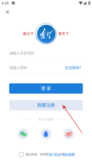 3、在登錄頁面,點擊我要注冊,進入手機注冊頁面。