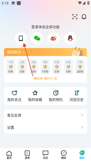 2、在個人頁面,點擊手機圖標,進入登錄四川觀察頁面。