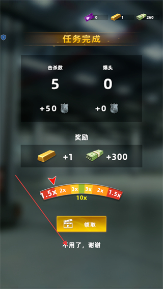 4、消滅所有敵人后,任務(wù)完成,查看擊殺數(shù)等信息,點(diǎn)擊領(lǐng)取按鈕獲取獎勵。