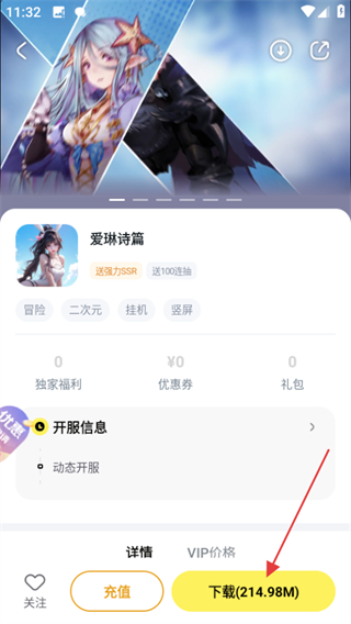 4、在游戲詳情頁(yè)面,點(diǎn)擊下載,即可下載愛(ài)琳詩(shī)篇游戲。