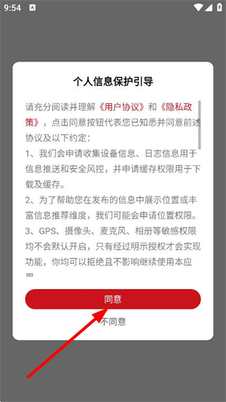 1、在個(gè)人信息保護(hù)引導(dǎo)彈窗中,點(diǎn)擊同意,進(jìn)入主頁面。