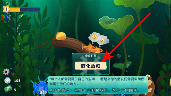 3、魚類養(yǎng)育與放歸,玩家能對魚類進行喂養(yǎng),待其成長到一定階段,可點擊野化放歸按鈕,幫助魚類回歸自然,完成這一操作還可能獲得相應(yīng)獎勵。