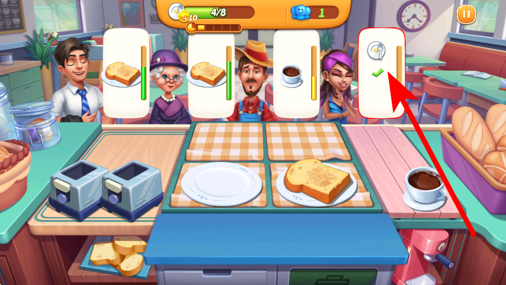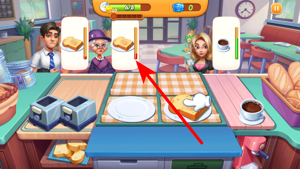 1、顧客會(huì)顯示所需餐品,如吐司、咖啡等,要留意每個(gè)顧客的需求,及時(shí)準(zhǔn)備對(duì)應(yīng)的食材,按照操作指引進(jìn)行烹飪,確保餐品制作符合要求,這樣才能順利交付。