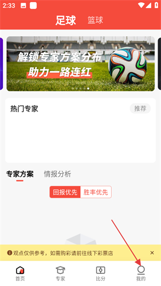 1、進(jìn)入極速有料,在足球頁(yè)面點(diǎn)擊底部我的,進(jìn)入個(gè)人頁(yè)面。