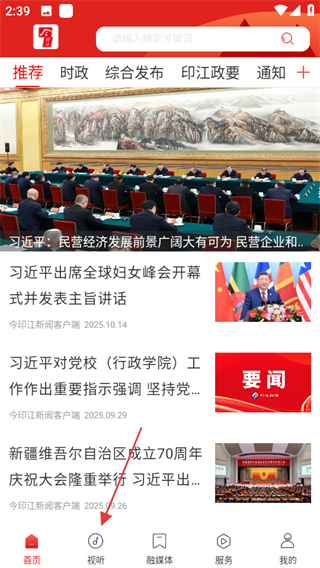 1、進(jìn)入今印江,在首頁點(diǎn)擊底部視聽,進(jìn)入視聽頁面。