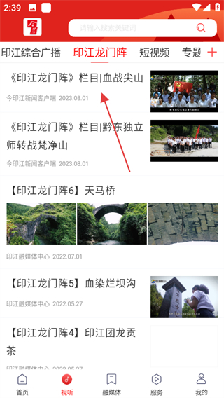 2、在視聽頁面,點(diǎn)擊印江龍門陣,進(jìn)入印江龍門陣欄目內(nèi)容列表頁面。
