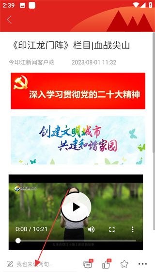 4、在內(nèi)容詳情頁面,點(diǎn)擊我也來說兩句處進(jìn)行發(fā)布評(píng)論互動(dòng)。